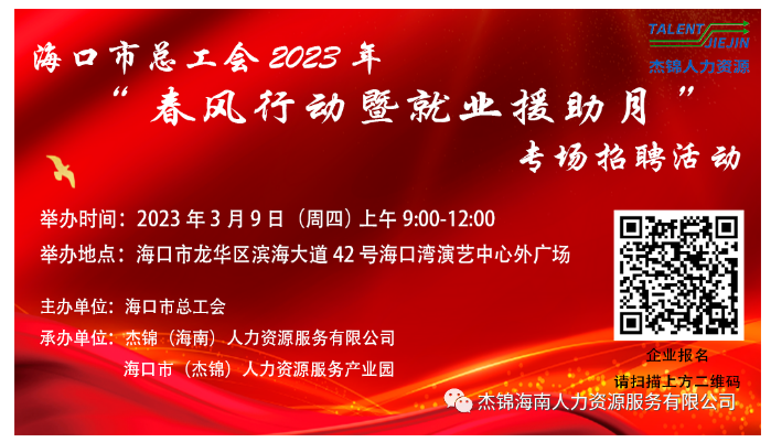 6月24日上午9時(shí)-12時(shí),由??谑旋埲A區(qū)人力資源和社會(huì)保障局、??谑校埲A)人力資源服務(wù)產(chǎn)業(yè)園主辦,杰...